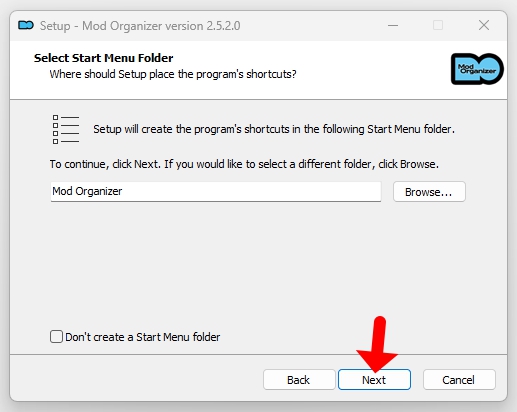 4. 시작 메뉴에 아이콘을 추가할 지 묻네요. 좌측 Don’t create~ 체크 하시고 Next 누르시면 추가가 되지 않습니다.