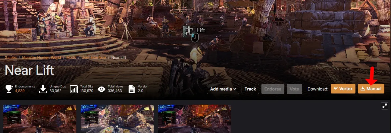 1. 아래 다운로드 버튼을 누른 다음 넥서스모드 사이트에서 우측에 있는 Manual 클릭해주세요.