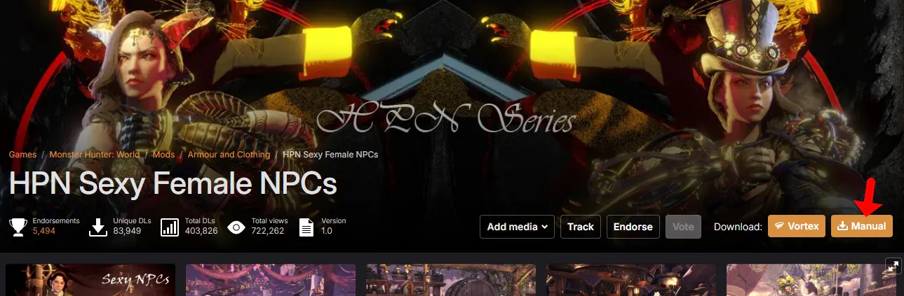 1. 아래 다운로드 버튼을 누른 다음 넥서스모드 사이트에서 우측에 있는 Manual 클릭해주세요.