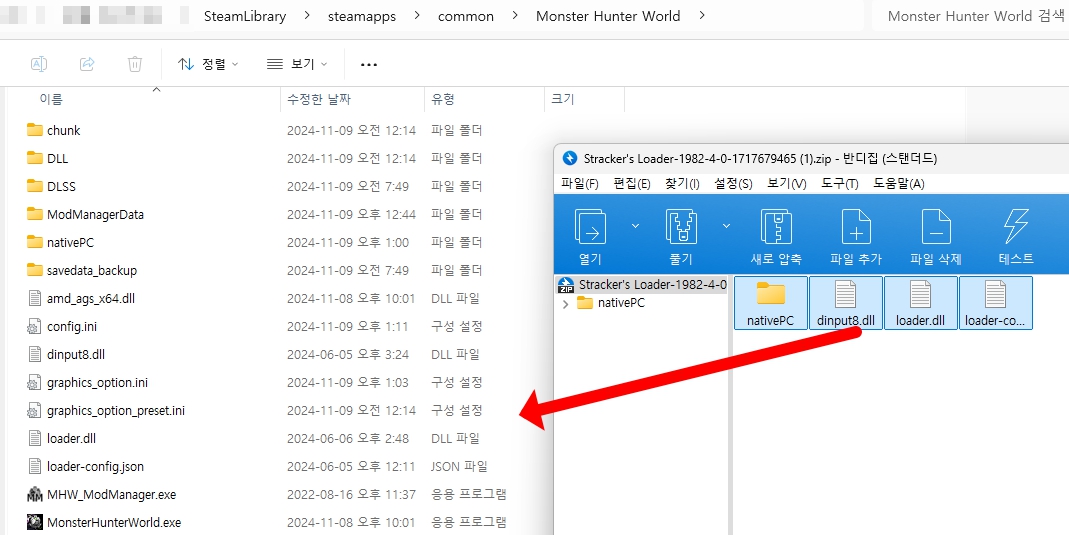 다운 받은 압축 파일을 열고 파일 4개를 아래 경로에 넣어주시면 끝입니다! 🙂
