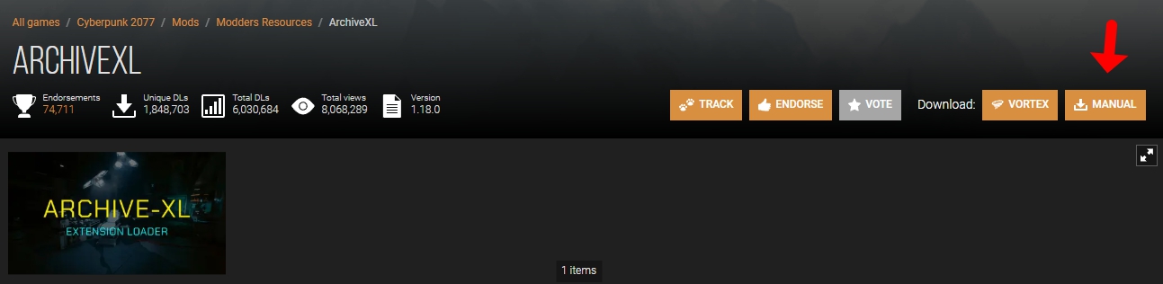아카이브XL은 RED4ext가 설치되어 있어야 적용가능합니다.