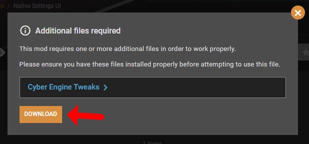 2. 위에서 Cyber Engine Tweaks 다운로드 하셨다면 아래 DOWNLOAD 버튼을 클릭하시면 됩니다.