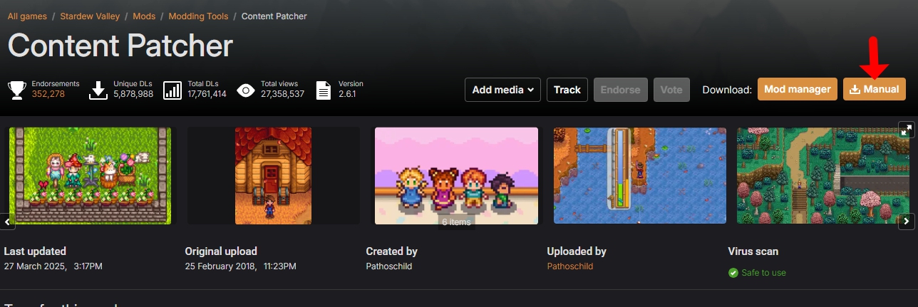 스타듀밸리 Content Patcher 다운로드 입니다.