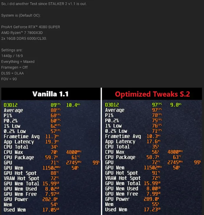 글카 4080 슈퍼 / 라이젠7 7800X3D 89프레임에서 97프레임으로 올랐다고 합니다.