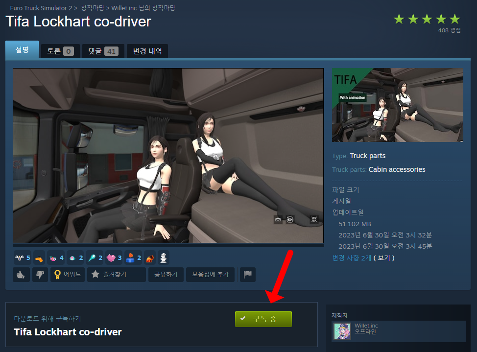 2. 구독 중 표시가 되고 하단 업데이트가 끝나면 게임 실행해주세요.