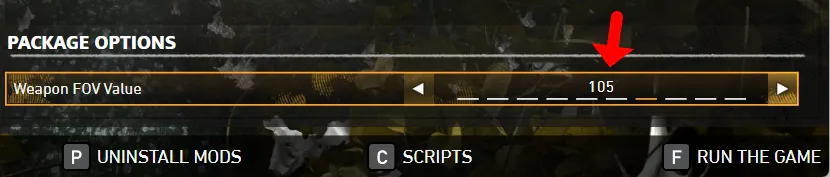 3. 설치가 끝나면 PACKAGE OPTIONS에서 시점을 최소 75에서 최대 120까지 변경할 수 있습니다.