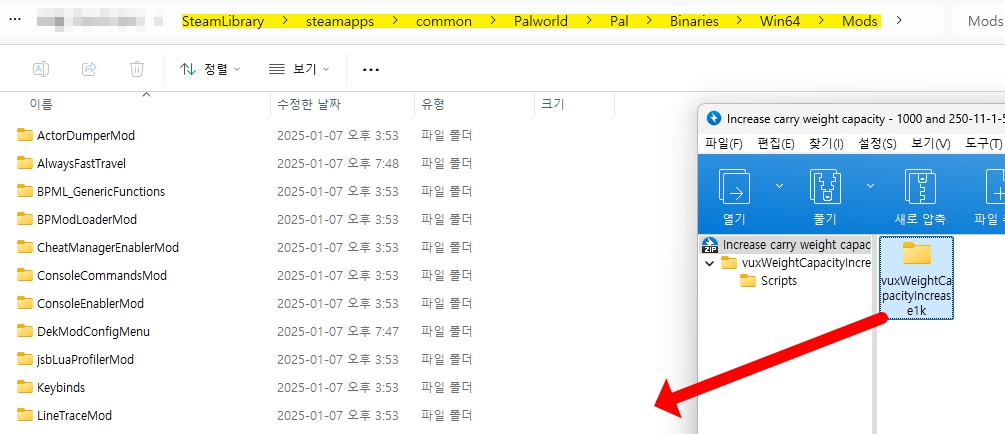 다운로드 받은 압축 파일을 열고 아래 경로에 vnxWeight~ 폴더를 넣어주시면 끝입니다. 🙂